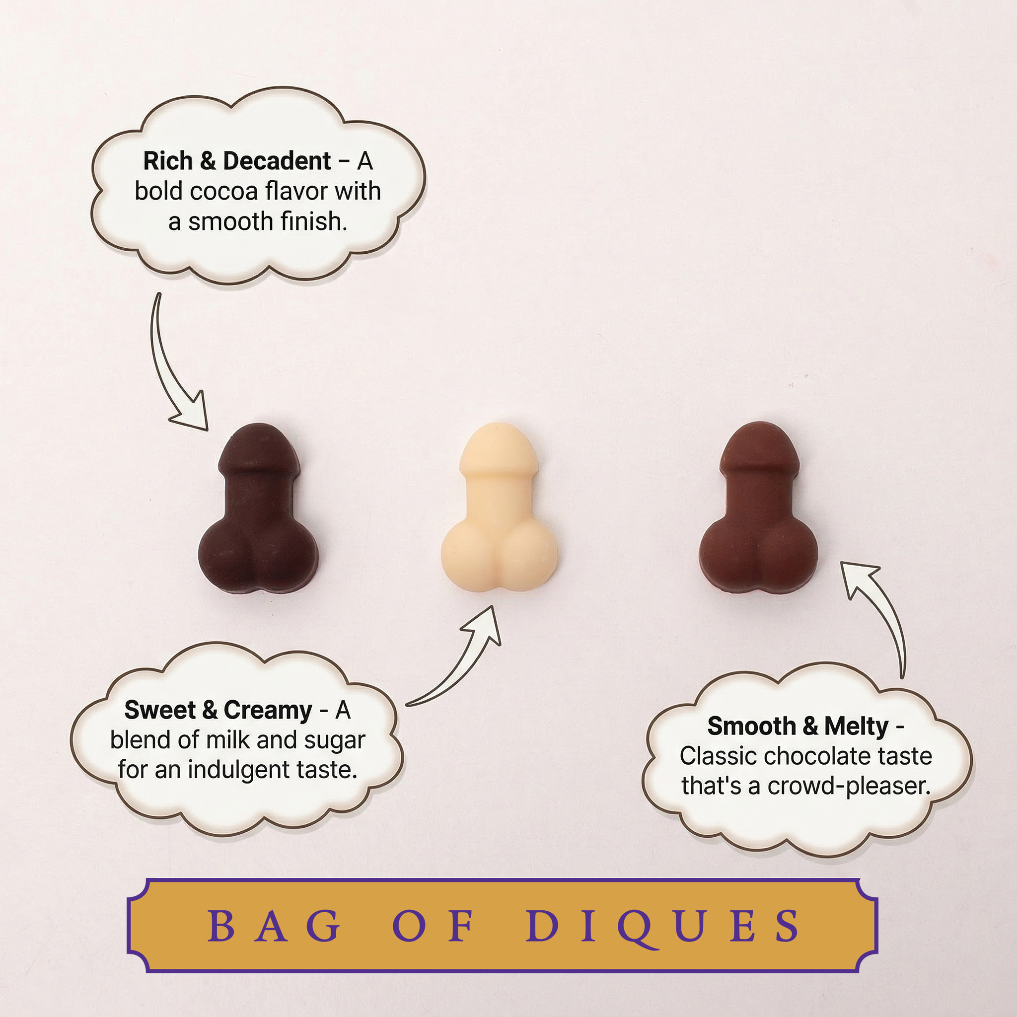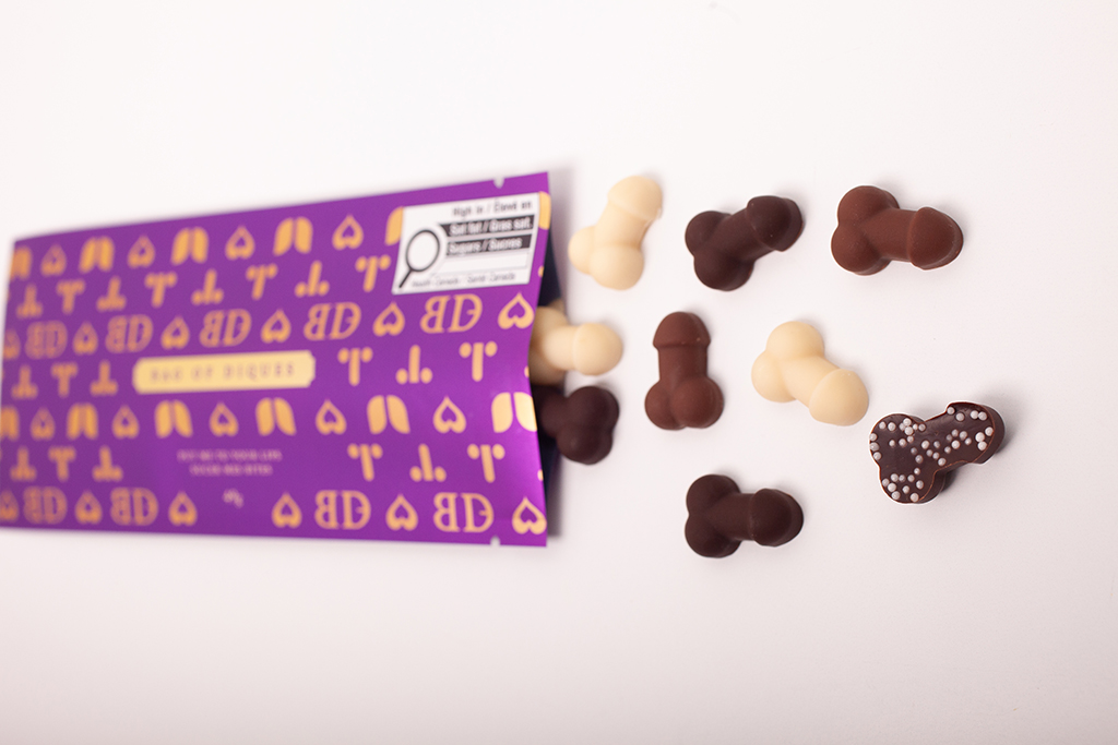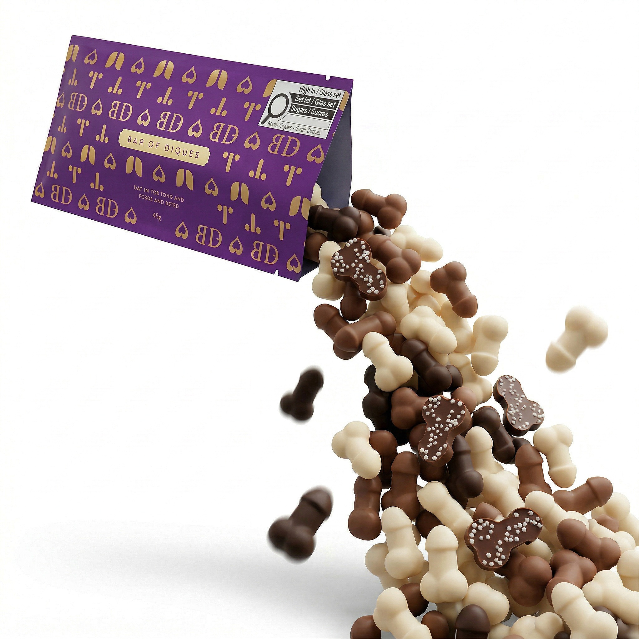 A beautifully packaged bag of cheeky little chocolates for moments when a polite gift just will not do.
